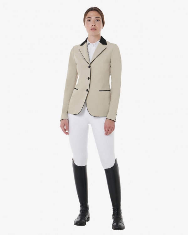 Casaco de competição para mulher Elegance com três botões e patch com logótipo Equestro no ombro.