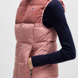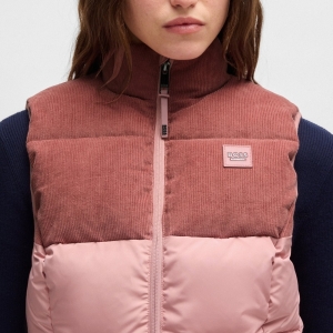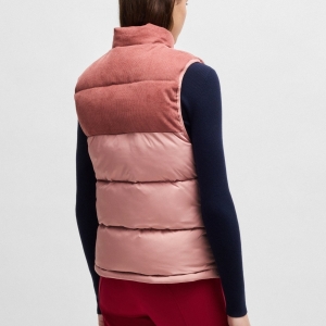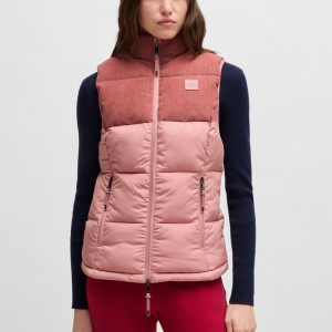 Mantenha o seu corpo quente com o acolchoamento leve e a repelência à água deste colete BOSS Womenswear resistente ao vento. Acabamento em bombazine texturizado 100% algodão. Patch com logótipo. Corte slim.