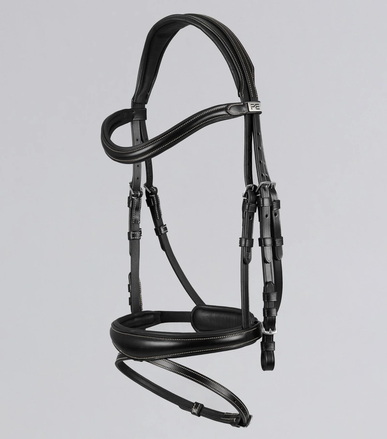 Ostentando um distinto emblema cromado em PE na testeira, a cabeçada Cassano Snaffle exibe sofisticação e luxo. Este detalhe sutil, porém marcante, realça o apelo estético geral, tornando-a uma escolha atraente para cavaleiros que apreciam a atenção aos detalhes. O emblema cromado em PE serve como símbolo de qualidade e artesanato, refletindo o design e a construção meticulosos da cabeçada.