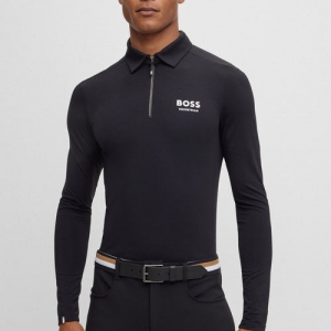 Um polo de treino distintivo de mangas compridas BOSS Menswear. Com uma carcela com fecho com um puxador da marca, este polo tem um ajuste slim em material respirável com desempenho super elástico. Outros detalhes de assinatura incluem um logótipo 3D no lado esquerdo do peito.