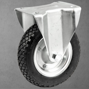 - Equipado com 4 rodas pneumáticas com diâmetro de 200 mm (2 fixas e 2 giratórias com travão)