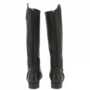 Em poliuretano granulado com aparência de couro. Efeito modelador graças ao forro em tecido elastano "stretch" Micro Touch, decorado com 4 pequenos strass na parte superior. Presilha elástica para os pés e zíper YKK traseiro, preso por um botão de pressão na aba na parte inferior.