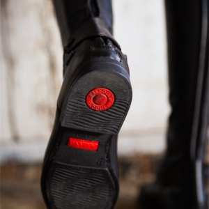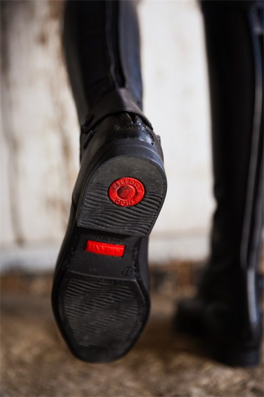 A atenção aos detalhes é tudo. Os porta-esporas, feitos de borracha dura e costurados nas laterais do pé, mantêm as esporas sempre na posição correta. A aba em pele, por sua vez, evita atritos e protege os fechos.