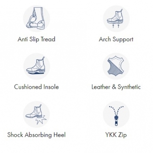 Os painéis laterais elásticos melhoram o conforto e a flexibilidade à volta do tornozelo, tornando estas botas de couro perfeitas para o uso diário. No calcanhar da bota, encontrará apoios de esporas de dois pontos acima da marca PE em relevo na parte exterior da bota. Para proporcionar um conforto duradouro, a sola moldada antiderrapante foi concebida para suportar o calcanhar, a ponte e a planta do pé, ao mesmo tempo que absorve o choque e o impacto da caminhada. Terminadas com uma subtil aba de marca, estas confortáveis botas de equitação curtas são perfeitas para o seu guarda-roupa equestre sazonal.