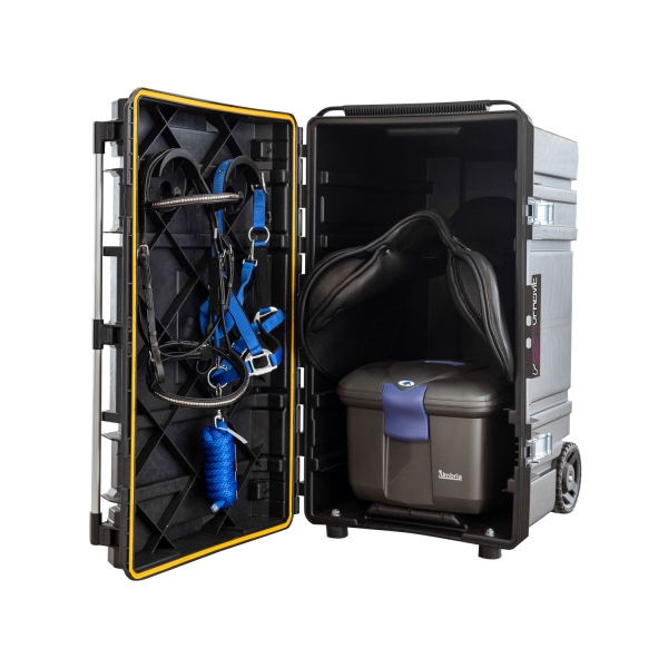 Perfeito para transportar produtos e equipamentos de cuidados e limpeza de cavalos.